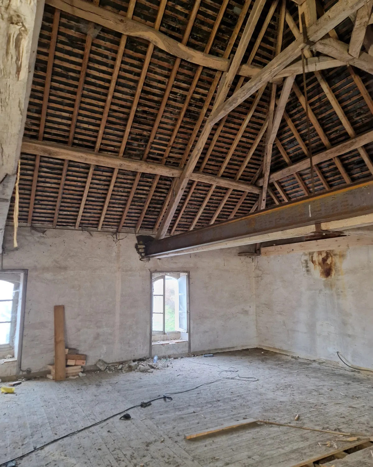 Située au cœur d’anciens bâtiments agricoles, cette demeure datant probablement de la fin de l’époque napoléonienne témoigne d’un passé rural prospère. Restée plusieurs années inoccupée, elle retrouve aujourd’hui une nouvelle vie à travers une rénovation complète menée dans le respect de son histoire familiale.